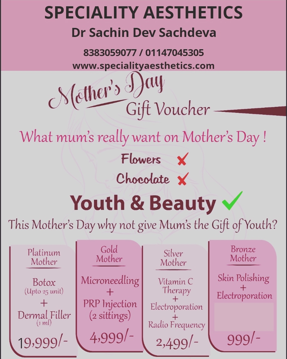 Botox Fillers in Paschim Vihar West Delhi _ Mother's day offer Avail heavy discounts on Botox Fillers Mesotherapy Microneedling PRP Growth Factors Hair Restoration Facial Aesthetics from 10th May to 15th May. Book your appointment with Dr Sachin Dev Sachdeva 8383059077